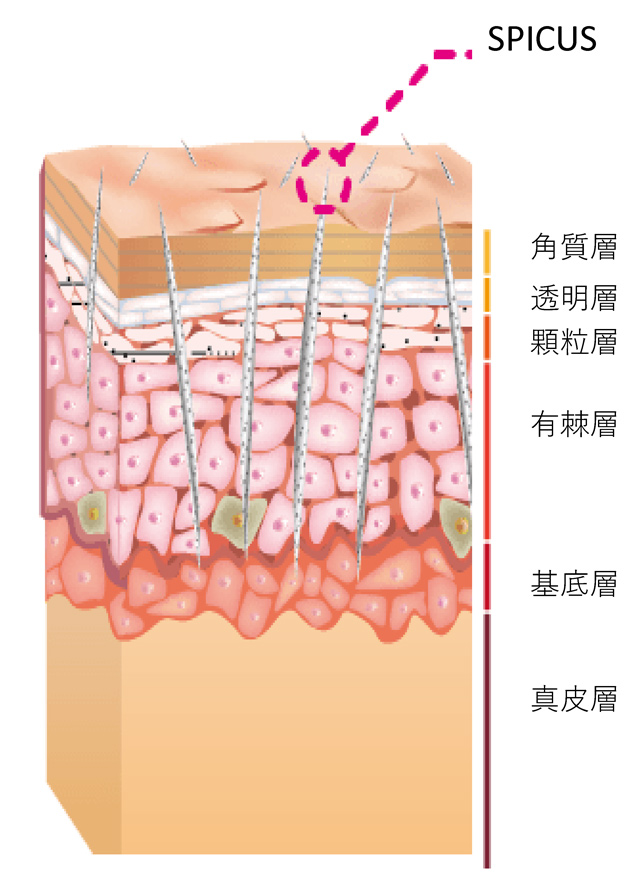 注射針の形状をしたスピーカースは、皮膚に穴を作り、有効成分を伝達する塗布型MTS効果を持っています。